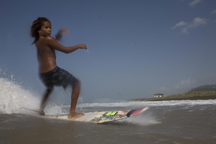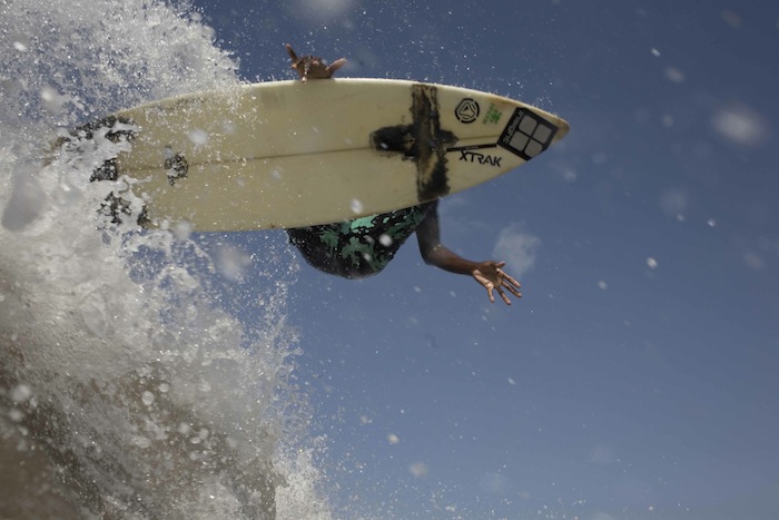 Most importantly, he does 360s. Lots of ‘em. On finless boards to which he adds ¼” inch fiberglass ridges, he stays extremely low, often grabbing rails, and is essentially at the mercy of the wave. He planes along at dragless hyperspeed, and twirls randomly and frequently, doing more 360s on a single wave than your average surfer does in a lifetime. But more important is the spirit of this weirdness. It looks ridiculously fun. It also looks like something you’d find smiling, Jockey-short clad twelve-year-olds doing on the nose-half of a broken board in deep Mexico.