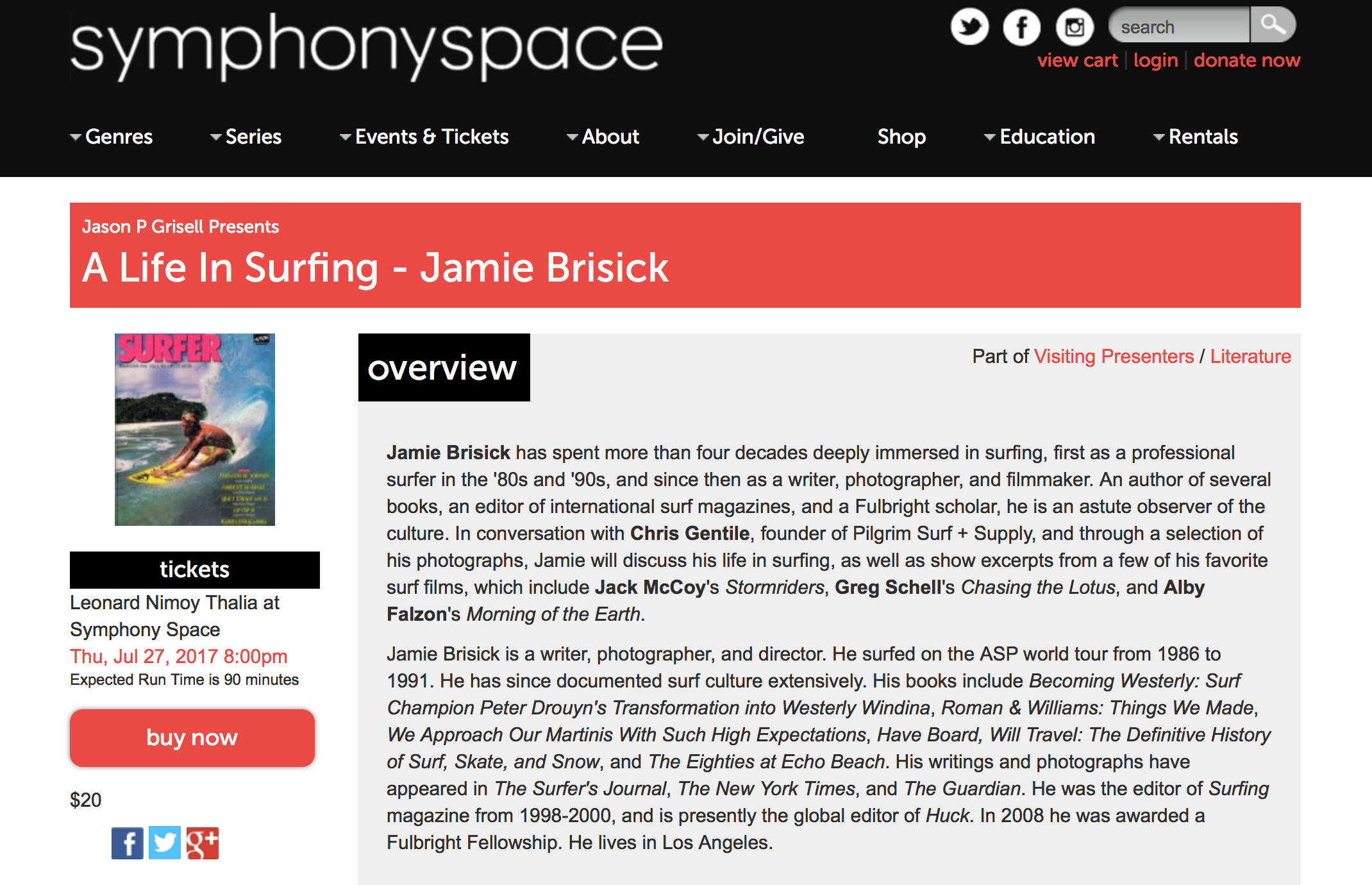 Not long ago I was giving a reading at a literary festival in Cornwall, England. It was a difficult passage about a close friend of mine who drowned while surfing in giant waves. I started improvising, telling the story as I remembered it, when suddenly I was seized by a combination of raw emotion and stage fright. I completely lost my train of thought. A hot flash washed over my face, my palms sweat, I froze up. And then George Carlin stepped in. In “Fart Jokes” he doesn’t so much crescendo as he simply runs out of material. “I have no ending for this,” he says/I said, “So I take a small bow.”
